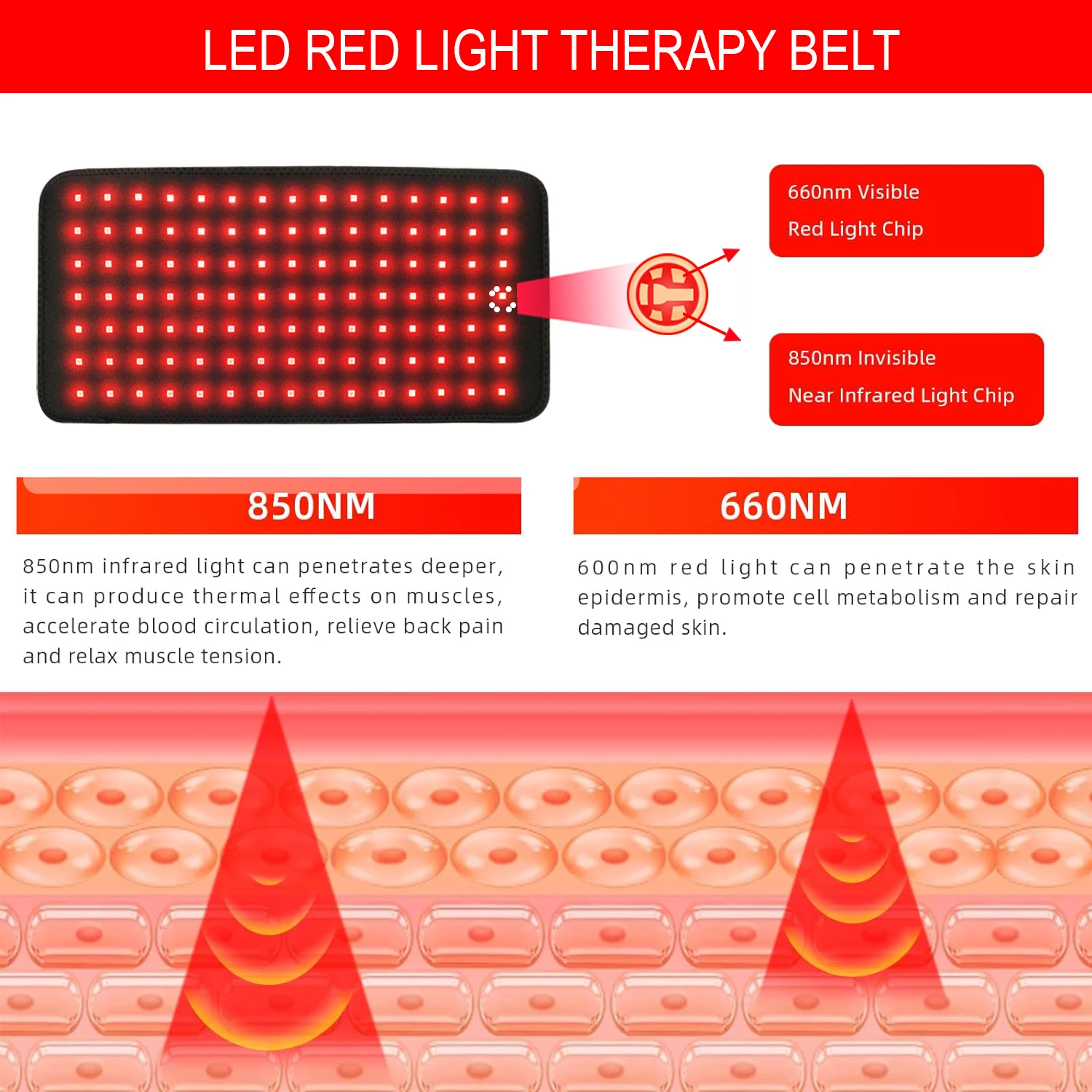 - Uses 660nm red light and 808nm near-infrared light